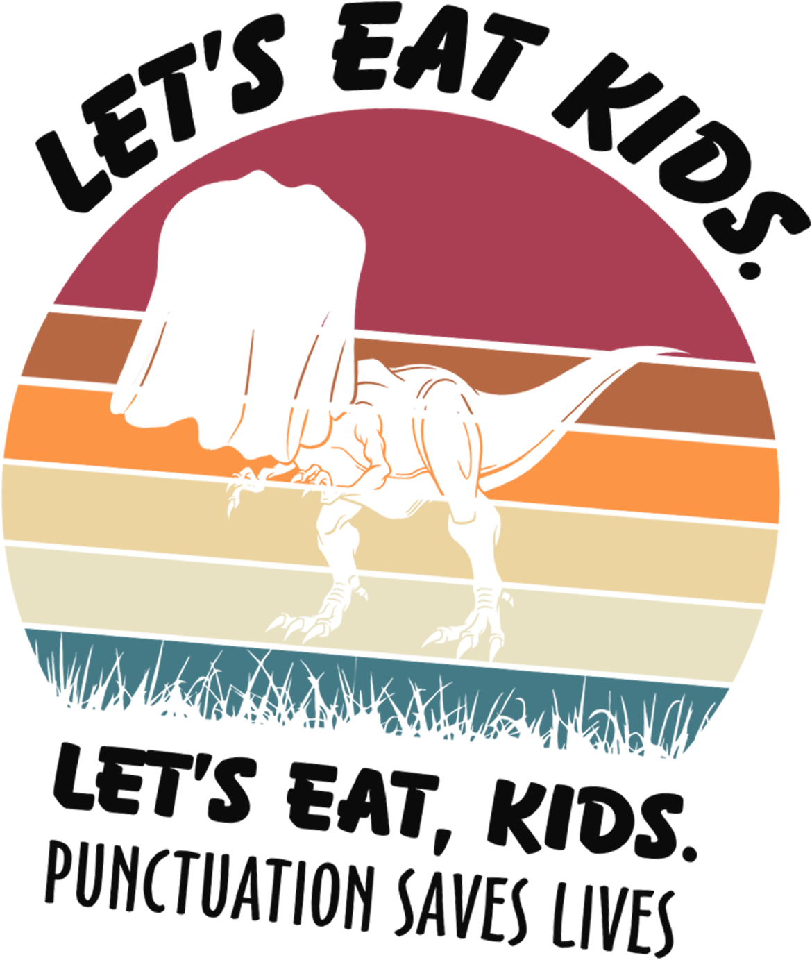 Get ready to make your students (and friends) laugh with this “Let’s Eat Kids. Let’s Eat, Kids. Punctuation Saves Lives” DTF transfer! Featuring a vintage sunset background and a T-Rex silhouette, this playful design is perfect for teachers, grammar lovers, and dinosaur fans.
